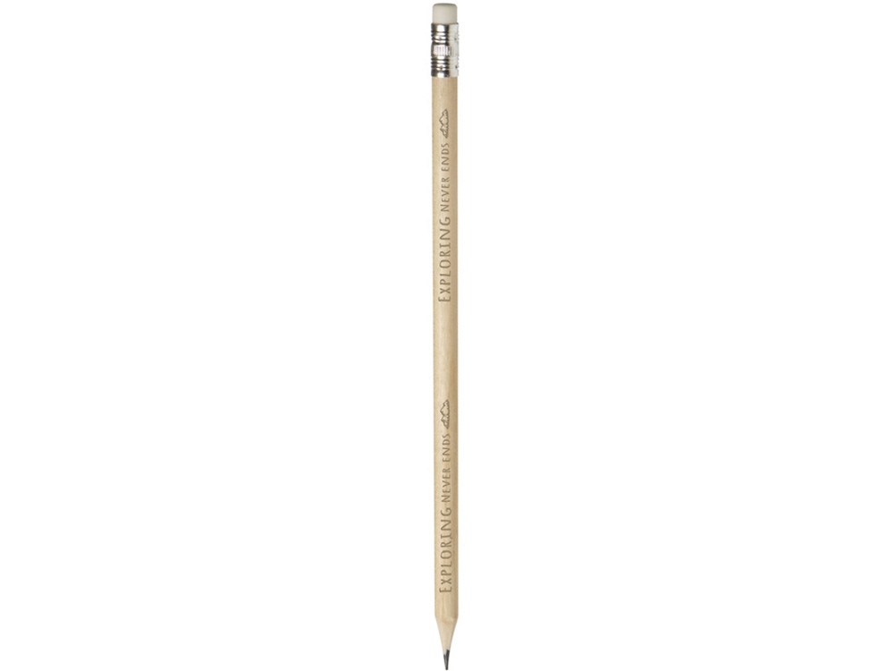 Карандаш с ластиком. Карандаш изготовлен из тополевой древесины, ластик — из графита, а обойма — из алюминия. Дерево.