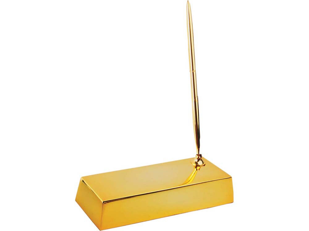 Человечество с незапамятных времен поклонялось Золотому тельцу. Настольный прибор "Золотой слиток" призван обеспечить его владельцу материальное благополучие. Да и финансовые сферы не останутся равнодушными к такому подарку