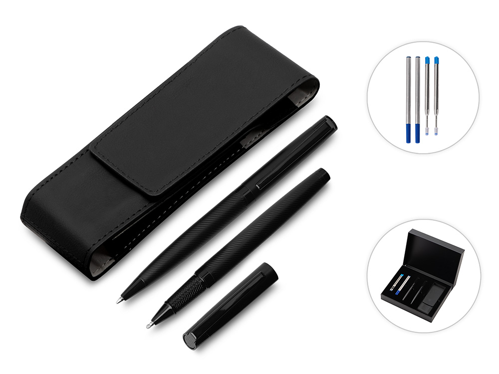 Если вы ищете премиальный и статусный подарок, то этот подарочный набор от бренда Lettertone для вас! Качество видно в каждом элементе. В набор входят шариковая ручка и роллер. Швейцарский пишущий узел Premec и немецкие чернила Dokumental обеспечивают мягкое и плавное письмо. Корпус каждой ручки имеет анодированный слой, благодаря которому гравировка получается с зеркальным эффектом.В набор входит также пенал для двух ручек, который также можно брендировать. - по 2 запасных стержня для каждой ручки в комплекте; - цвет чернил: синий; - набор упакован в подарочную коробку.