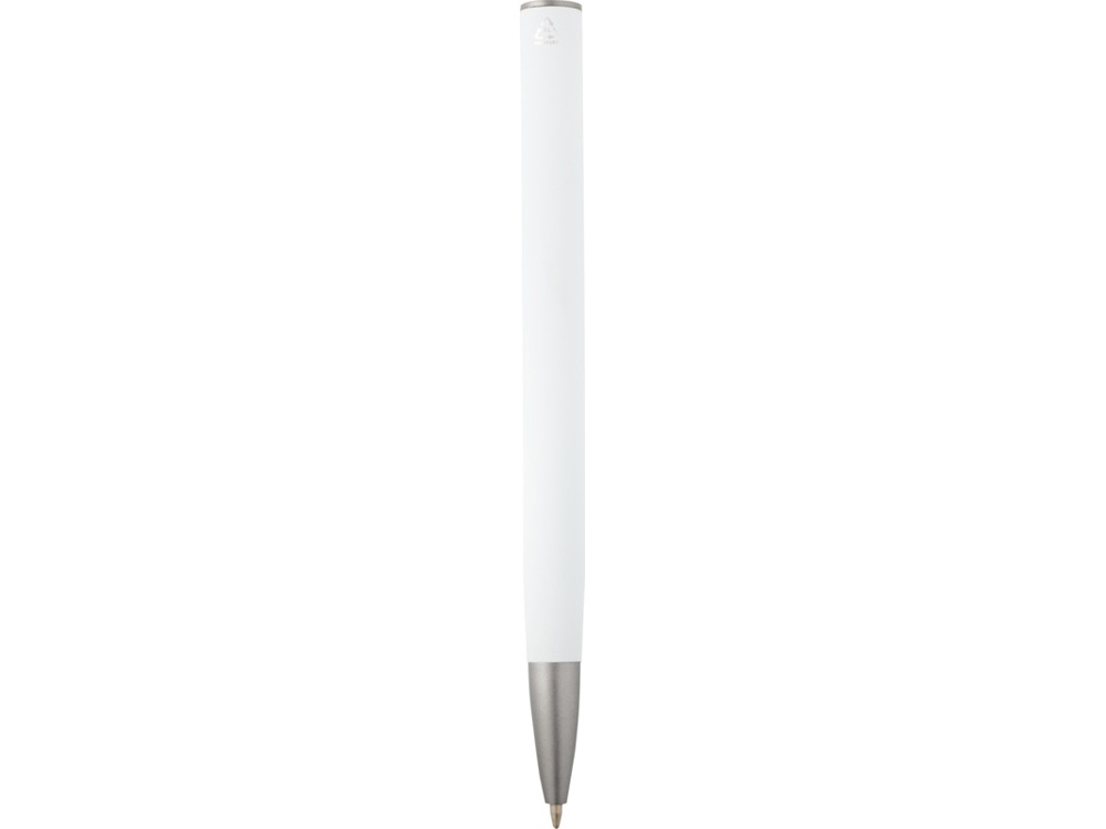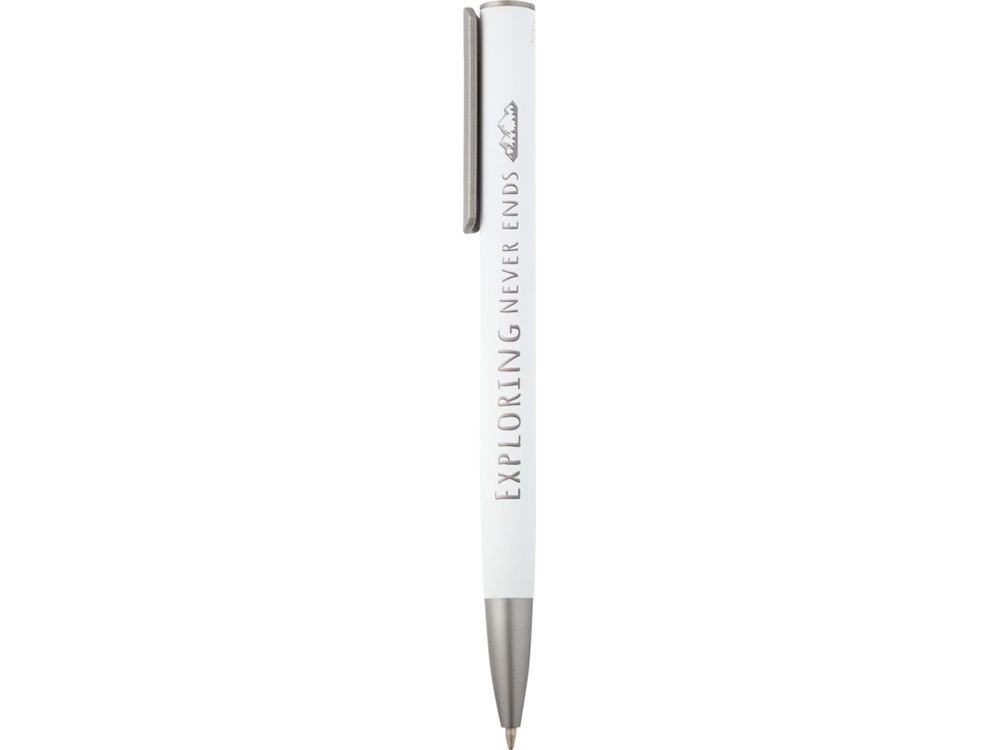 Шариковая ручка с корпусом из переработанного алюминия и посеребренным зажимом из пластика ABS. Цвет чернил: синий. Длина непрерывной линии: 800 метров. Размер пера: 1,0 мм. Recycled Aluminium.