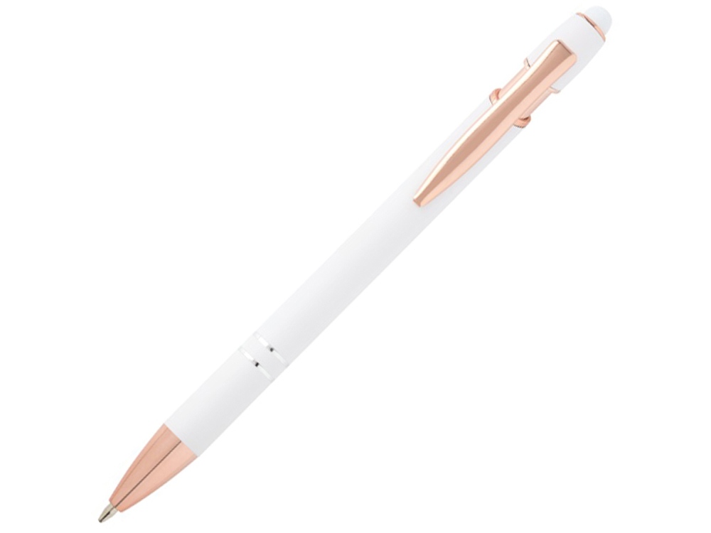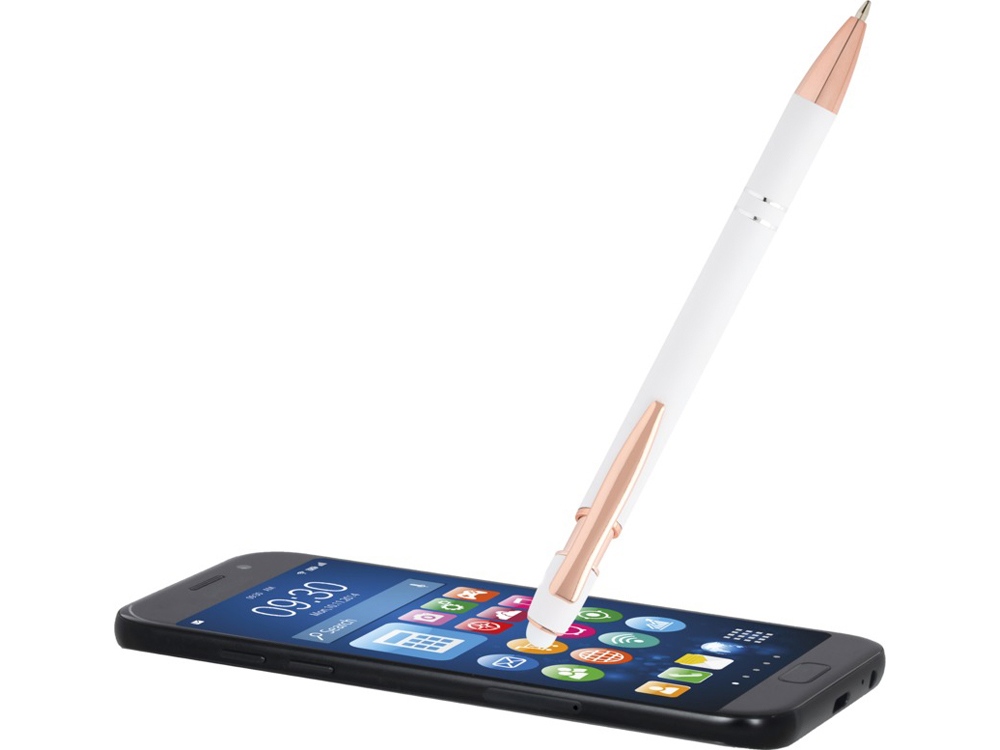 Шариковая ручка Nanna с покрытием из розового золота имеет корпус из переработанного алюминия и сенсорный стилус из силикона. Переработанный алюминий уменьшает количество отходов на свалках и помогает сохранять природные ресурсы для сокращения выбросов парниковых газов. Цвет чернил: синий. Длина непрерывной линии: 800 метров. Размер пера: 1,0 мм. Recycled Aluminium.