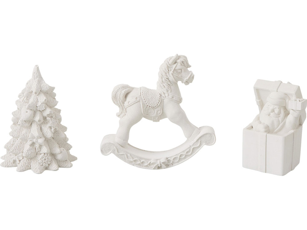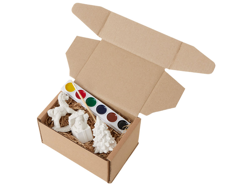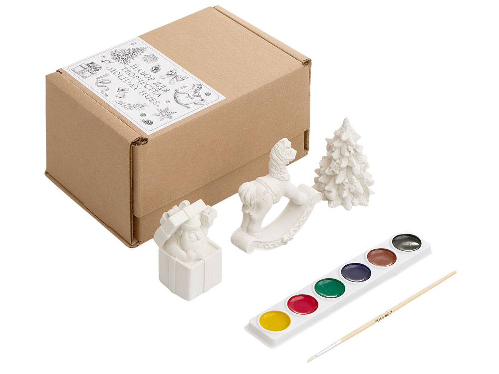 Набор для творчества «Holiday Hues» станет прекрасным подарком на Новый Год и позволит приятно провести время на каникулах всей семье. В набор входят три гипсовых фигурки — лошадка-качалка, елочка и подарочная коробка с Дедом Морозом, а также акварельные краски и кисть. Игрушки можно покрывать краской в несколько слоев, чтобы дополнить дизайн яркими деталями. Акварельная краска легко смывается теплой водой, поэтому игрушки можно неоднократно раскрашивать – достаточно смыть краски и дать изделиям высохнуть. • Интересное занятие для детей и взрослых • Можно раскрашивать много раз