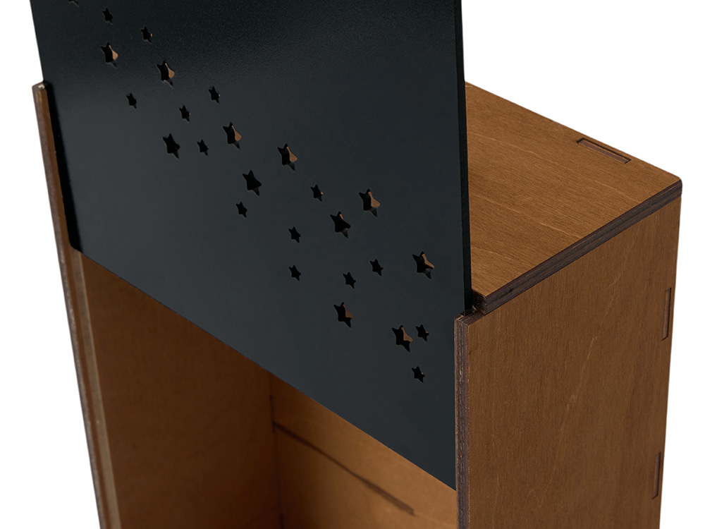 Изящная подарочная коробка из натуральной фанеры с перфорацией в виде звёзд создаёт эффект лёгкого мерцания и волшебства. Идеально подходит для упаковки небольших подарков, сувениров или памятных мелочей. Такой дизайн превращает обычный подарок в особенный.